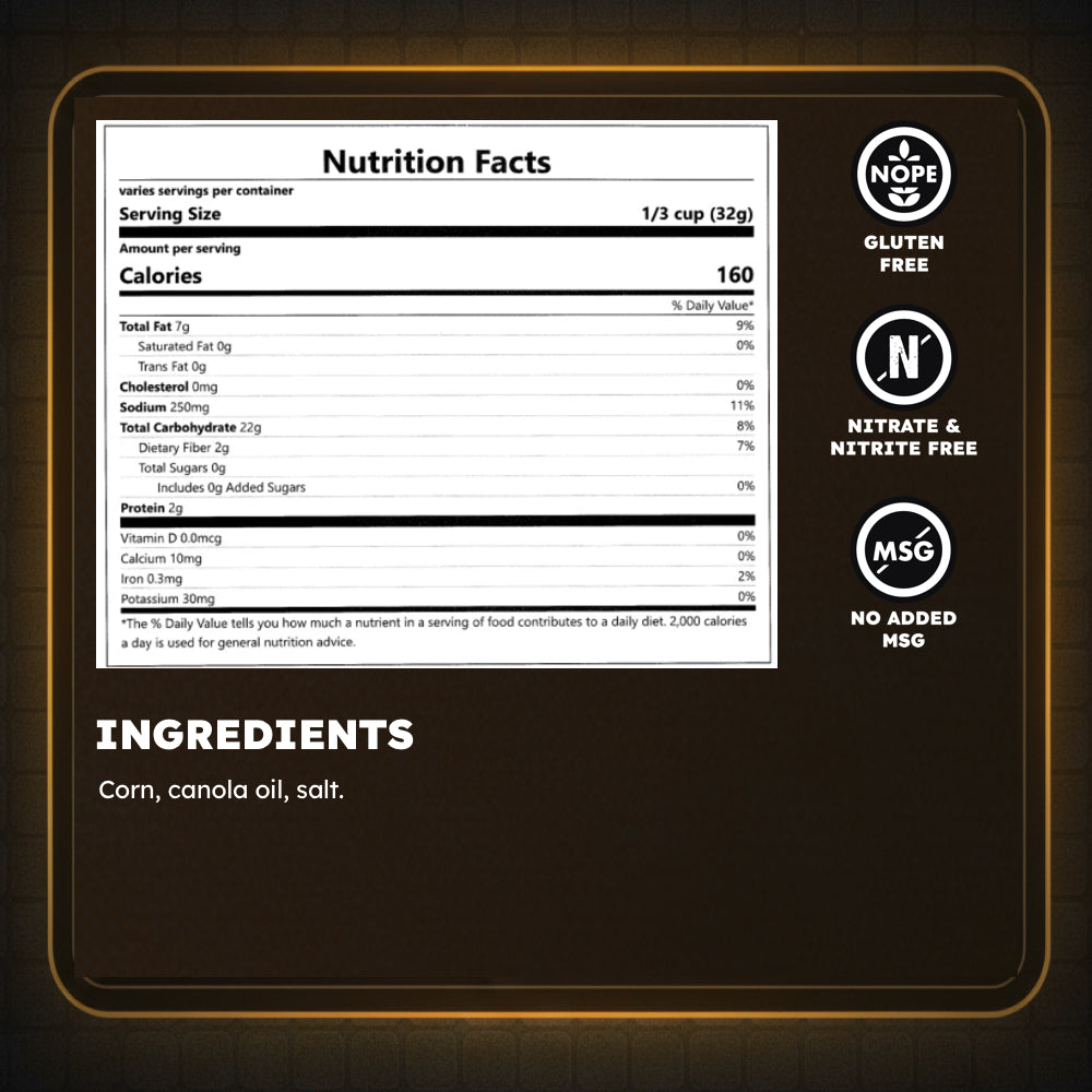 Pure and simple, our Original Toasted Corn Nuts are all about the crunch. Lightly salted and perfectly toasted, this classic snack is just right for when you want something straightforward and satisfying